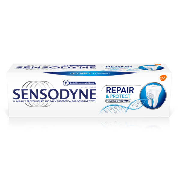 Rapid relief from hypersensitivity pain: Sensodyne Repair & Protect toothpaste contains NovaMin®, a unique formula that quickly forms a protective layer over sensitive dentin, the inner layer of your tooth. This protective layer helps to block pain signals from reaching the nerve, providing rapid relief from hypersensitivity pain.